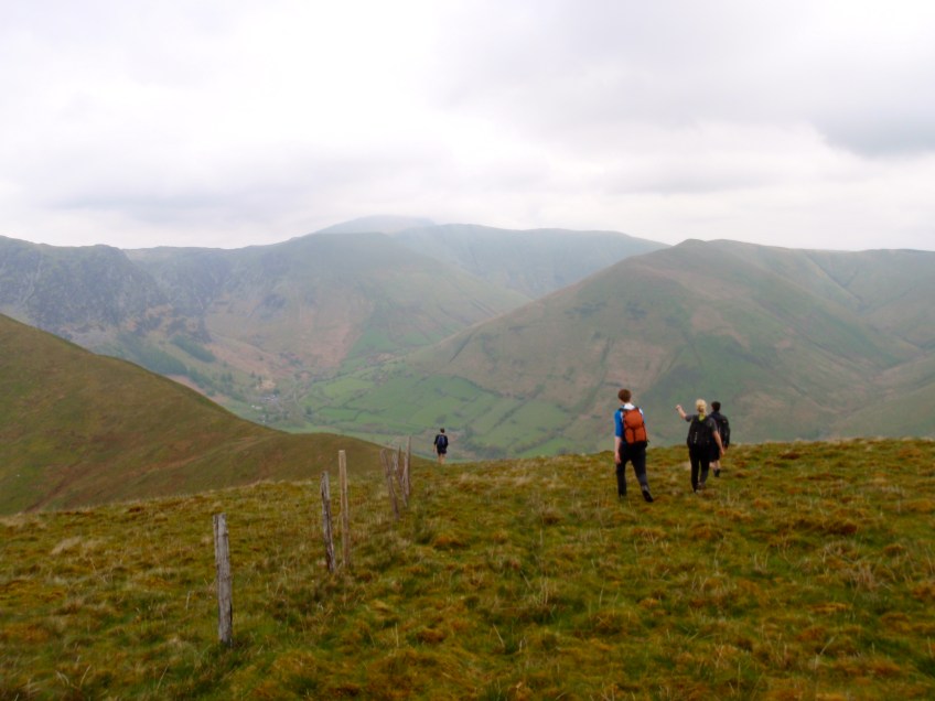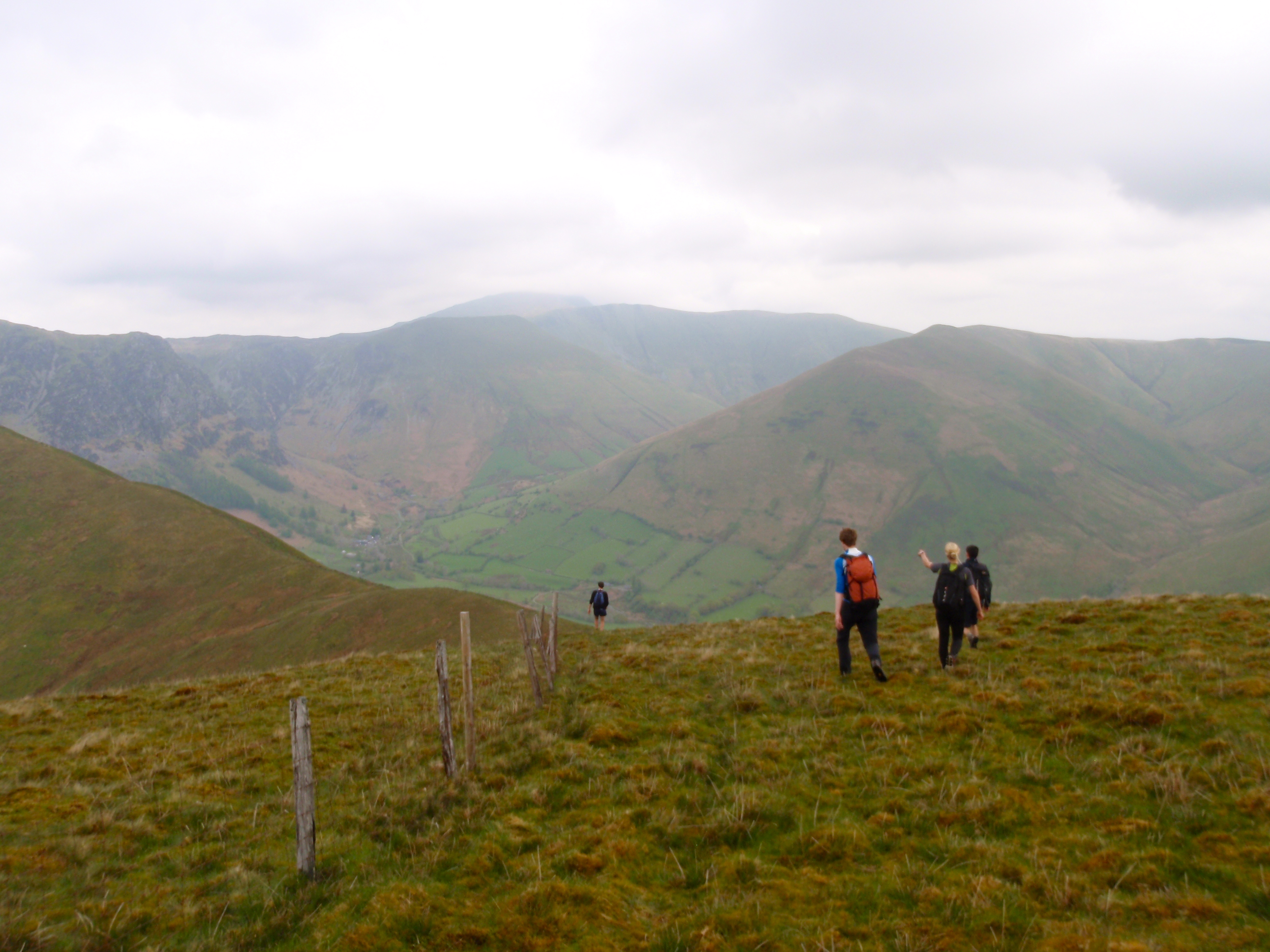 OLYMPUS DIGITAL CAMERA Published May 5, 2014 at 3968 × 2976 in A climb, a walk and some good company Paul, Dave, Becky and Tom descending from Foel Benddin towards Y Gribin at the start of our round of Aran Fawddwy