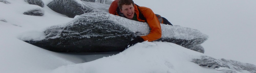 The fun ended too soon, and we were on the top by lunchtime, so after a quick relocation on the summit of Glyder Fawr, we headed over to Glyder Fach.  The wind scoured plateau and a path that was well compacted by the huge crowds meant it was easy going. Until I got bored and attempted the direct route out of the col onto Castell y Gwynt. Once again into the holes and crusty deep snow covering a boulder field. After about 30 minutes of slogging, we came over the top and back onto the path, 200m from where we had left it. A quick jaunt up to see the cantilever, and we were once again tempted off the path towards the top. It soon became apparent that no-one had attempted to reach the summit of Glyder Fach. The summit being a massive boulder field with human sized holes covered in snow, this is hardly surprising and once we remembered this, we also aborted. Some of the most tiring and trickiest conditions we have ever been out in.