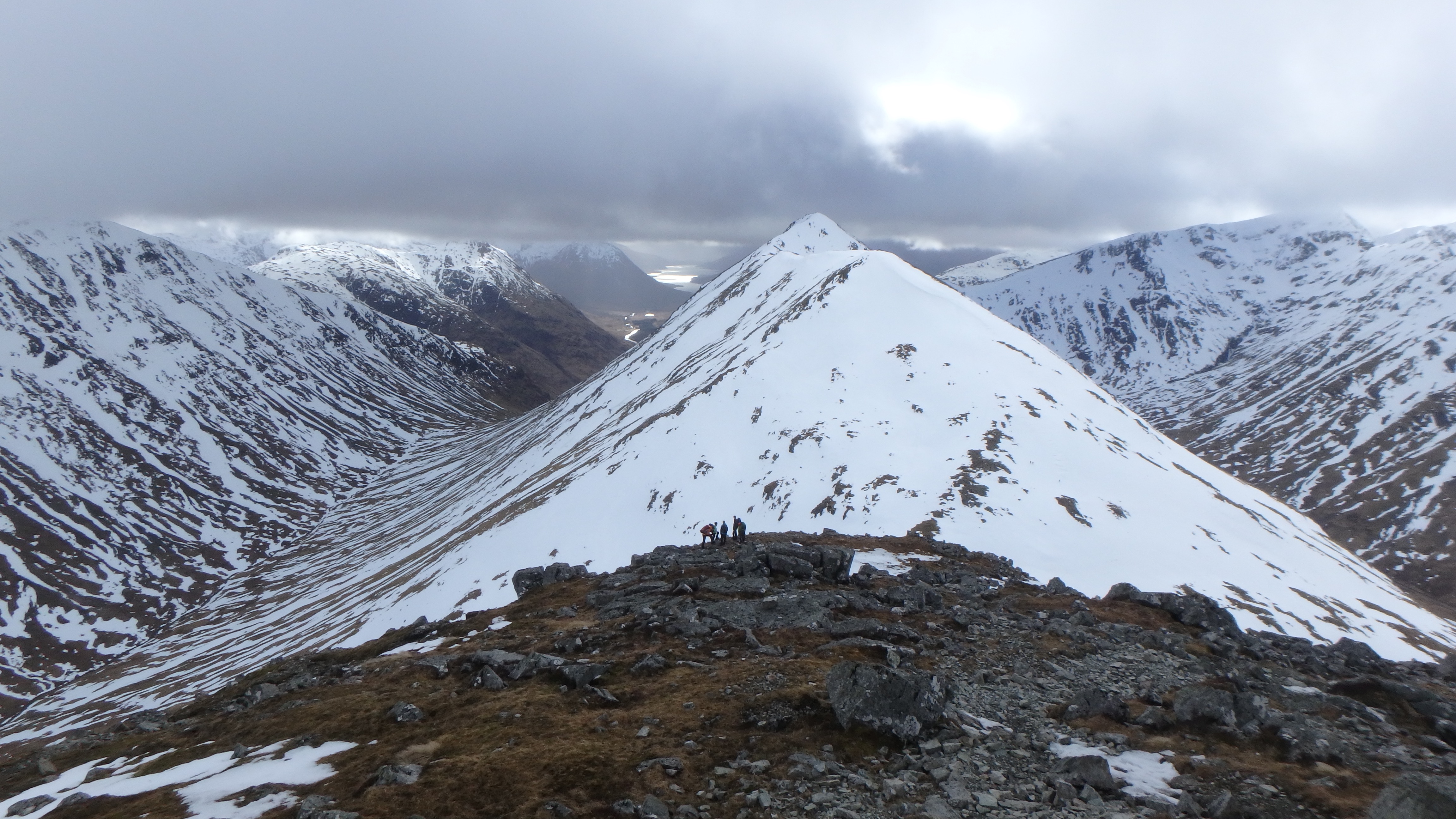 OLYMPUS DIGITAL CAMERA Published March 26, 2018 at 4608 × 2592 in CUHWC Winter Skills 2018 Looking back at Stob Dubh and the group coming up the ridge to Stob Coire Raineach