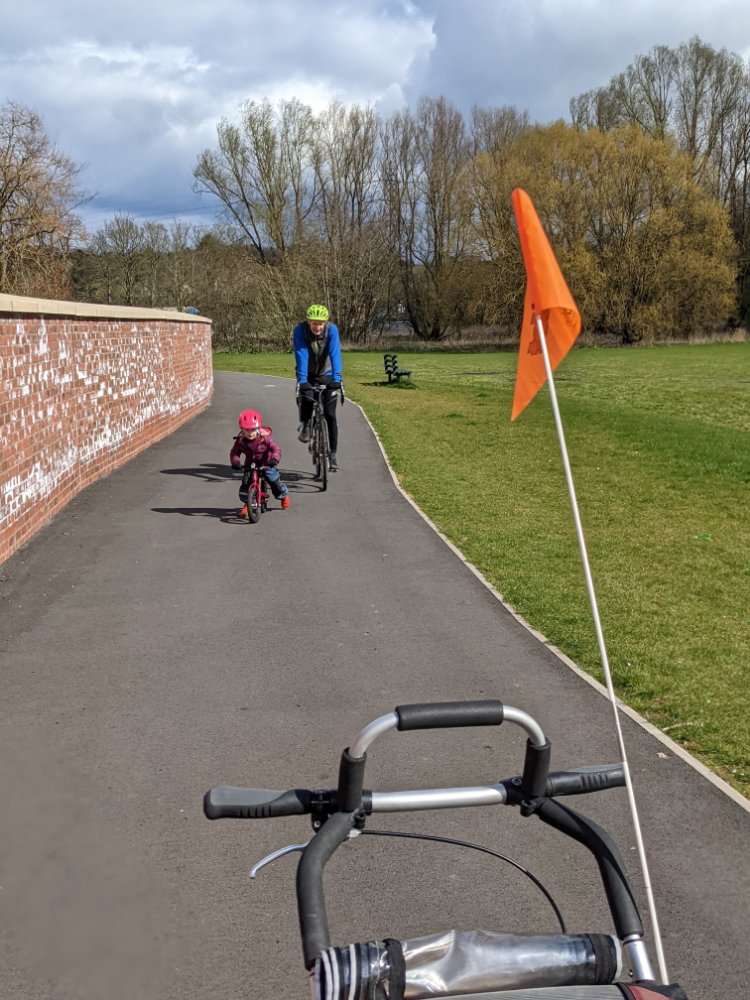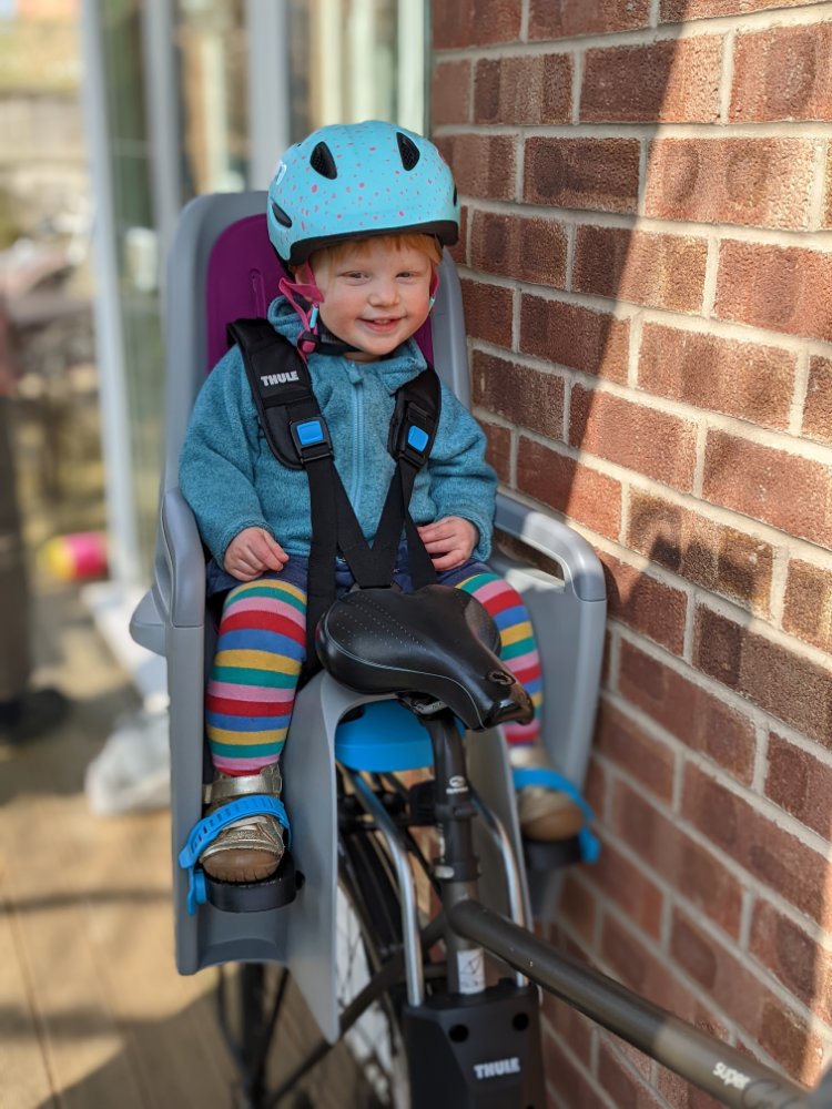 We started by cycling over to Littleover on Monday for a playdate – avoiding more time in the car and giving the bikes/trailer/seat a test run.