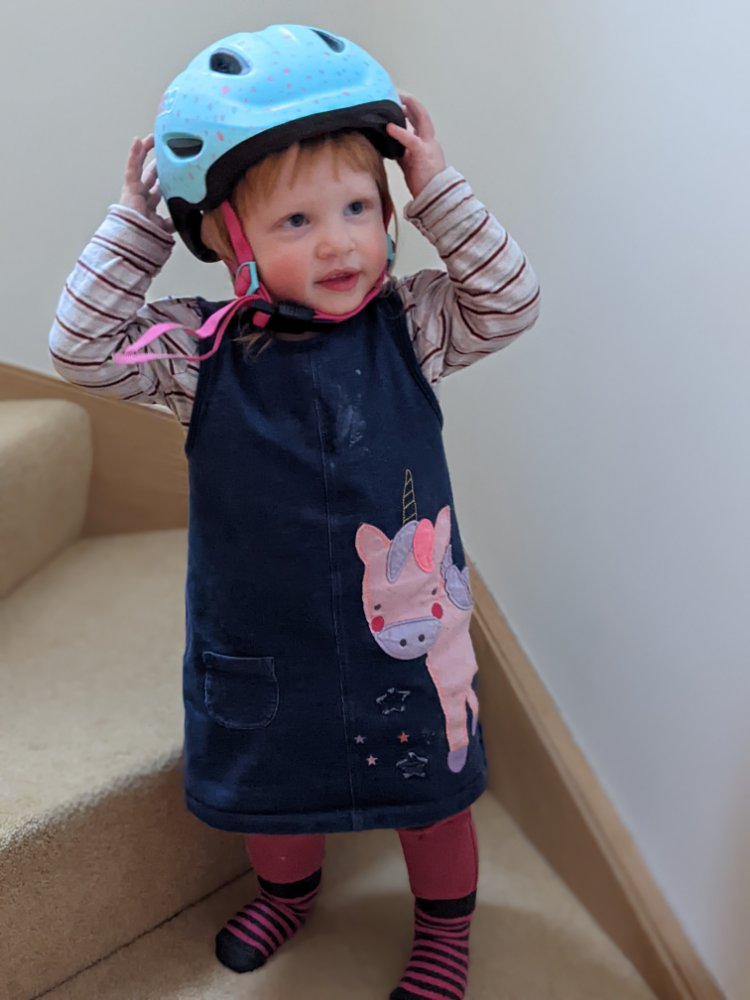 Saturday was a longer 30k ride via an off-road cycle track for Jess, a closed playground, a cafe, a steep hill to a priory and then finally an open playground.