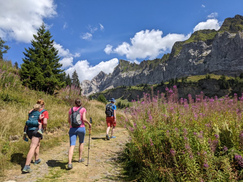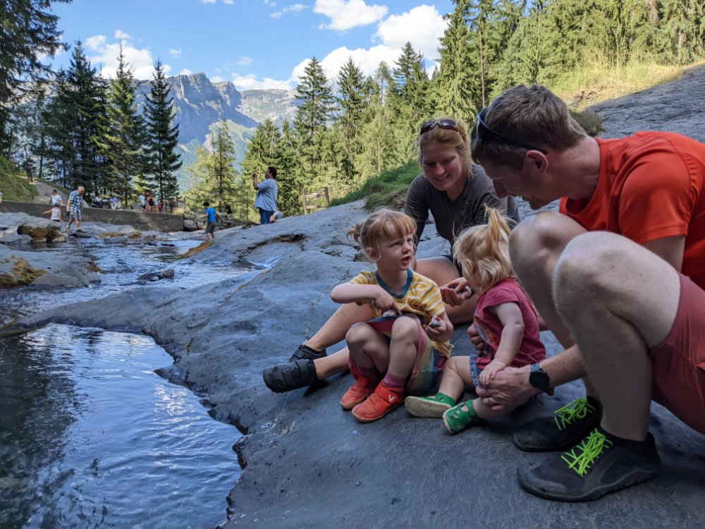 Patisserie inspection / dissection Our favourite shady spot by the poolAcorn collection We cycled up to Cascade du RougetExploring below the waterfall Cycling a little further up… … To find a gorge (canyoners for scale) Plopping (universal toddler fun) Natural limestone paddling poolsShade AND a view Cuddles by the cascadeSummer evening light at the campsite lakeStill (and) warmAnother day, another forest trackOut of the treesView back towards Samoëns Nearly at the hutRefuge du BostanArty grass and cliffsTraverse to hut number twoLovely paths and fantastic views Heading down again Forest wanderers