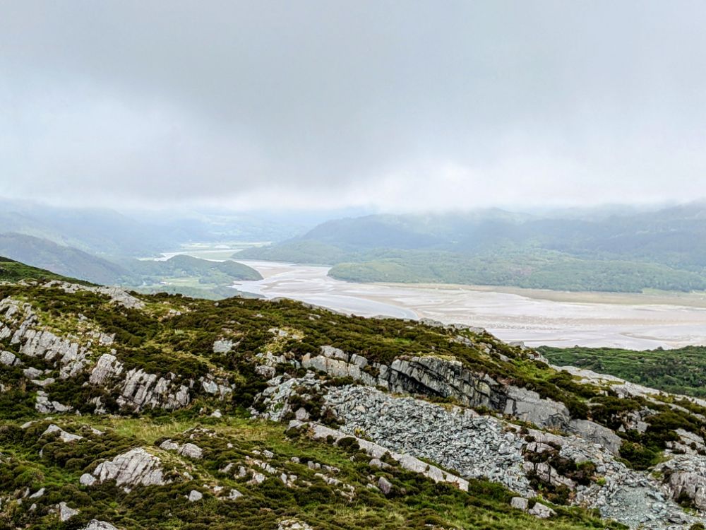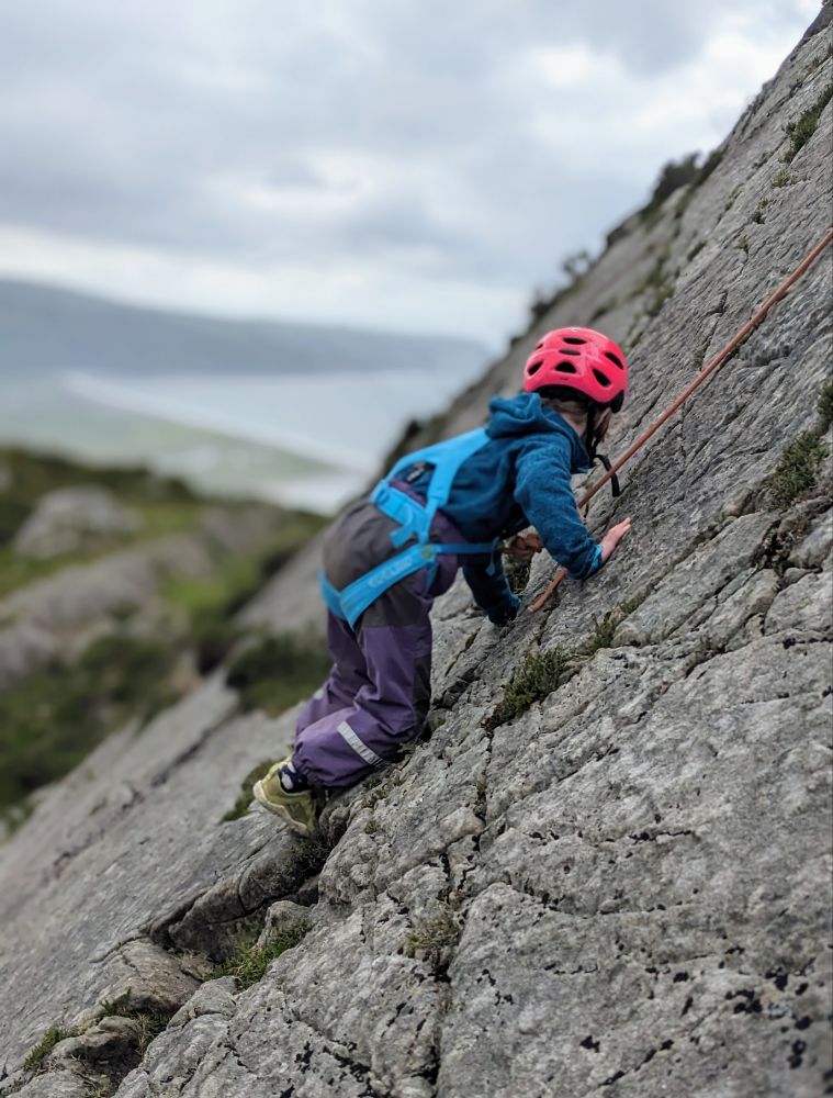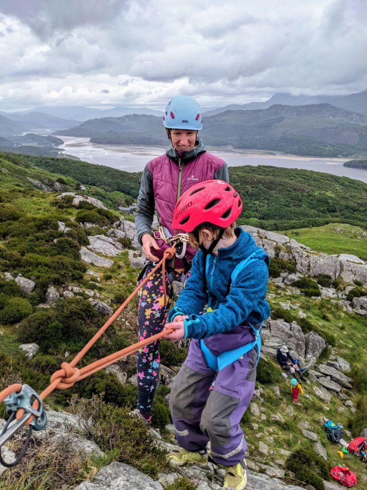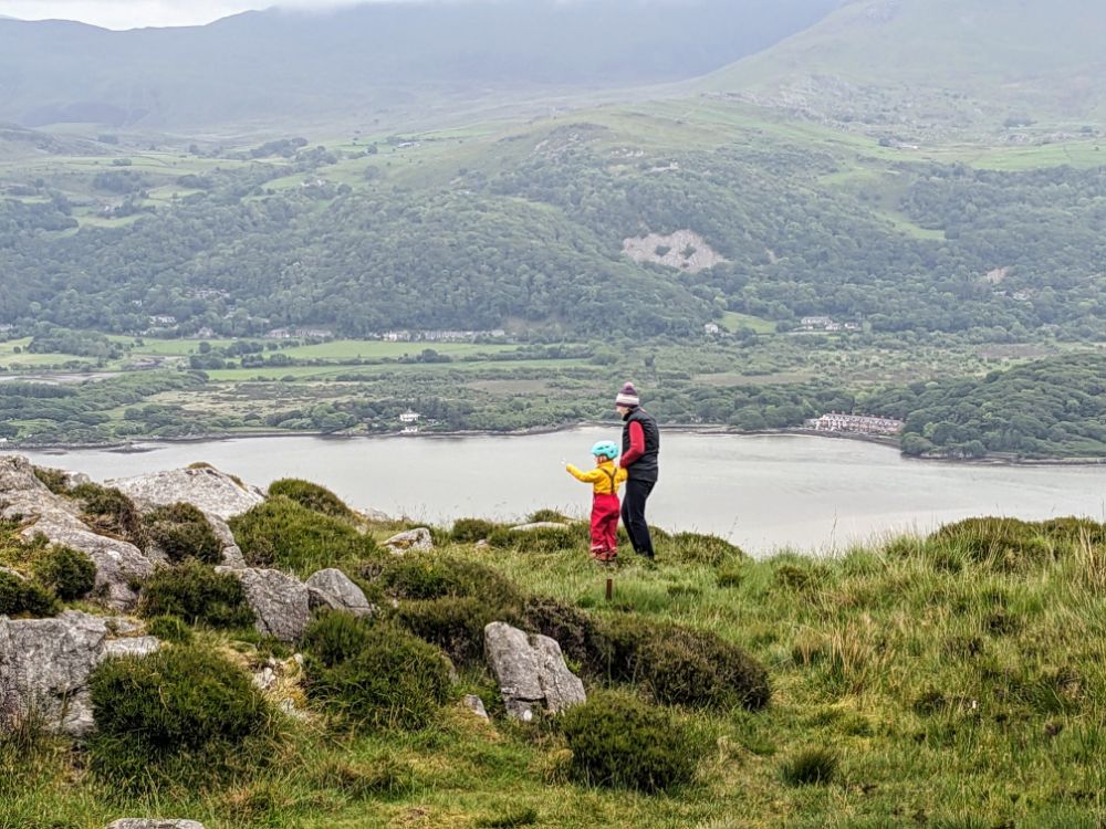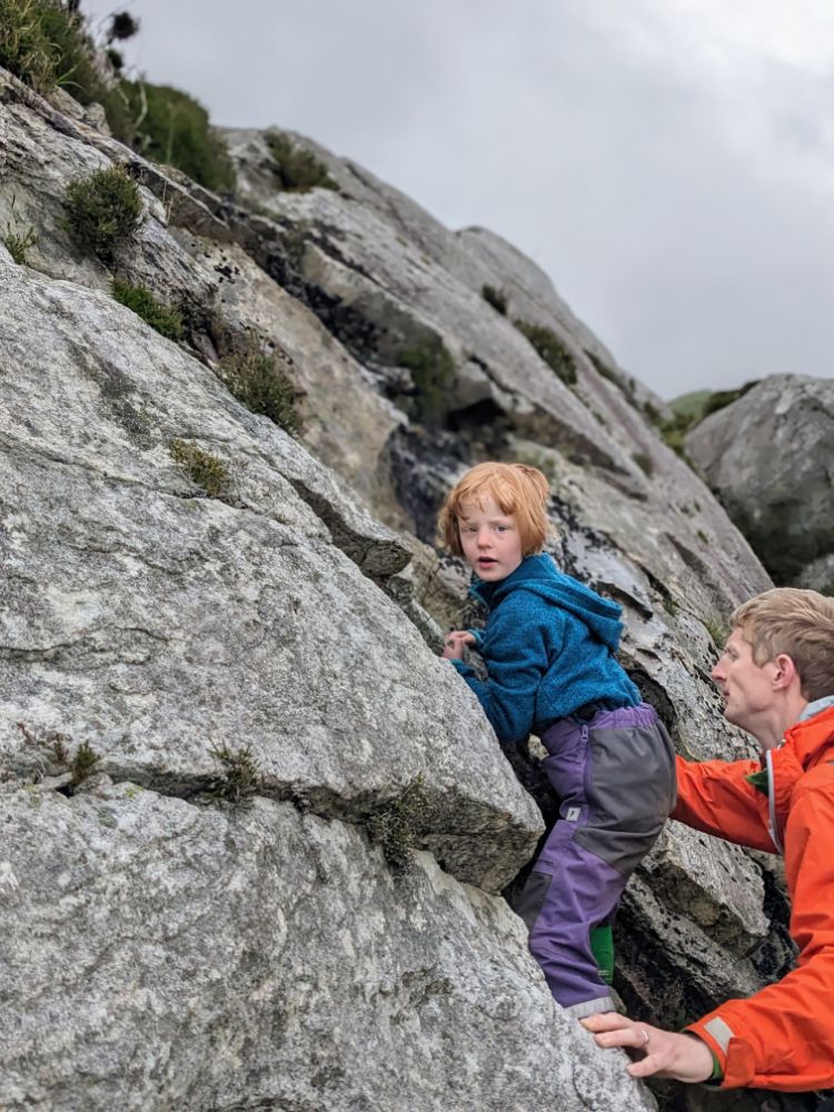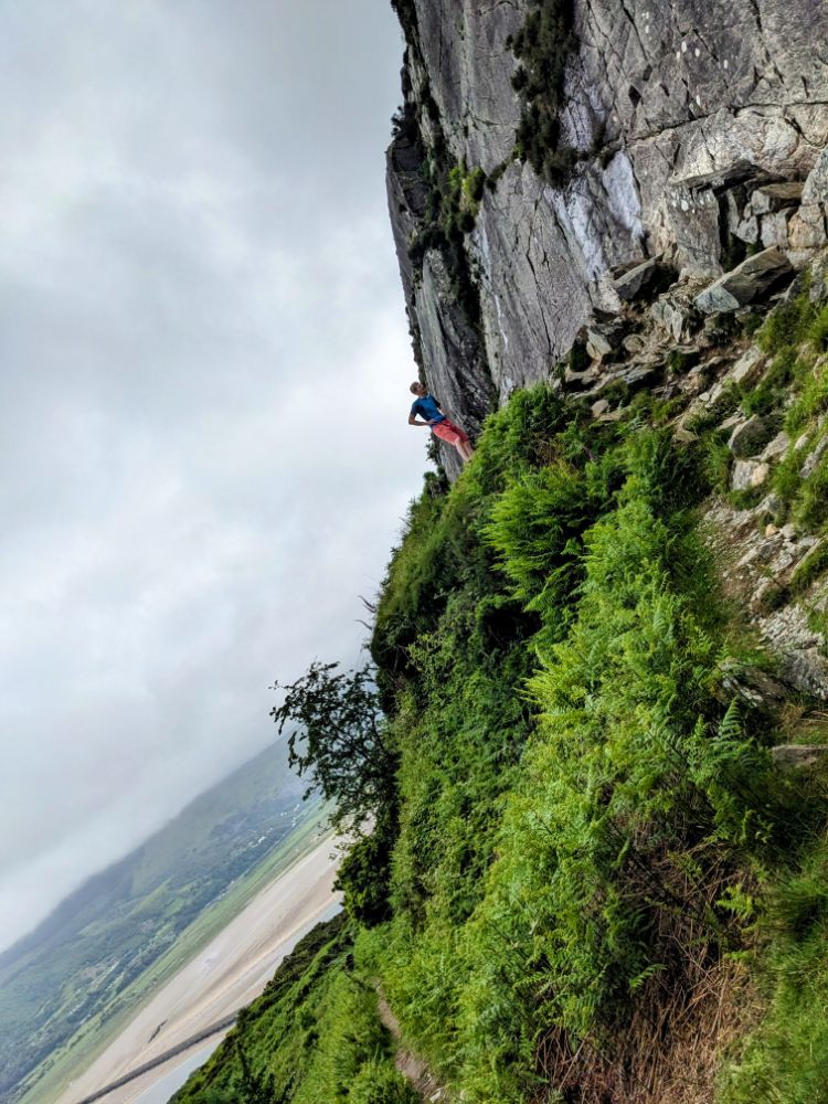 Saturday. Our cottage was fairly spectacularly situated high above Barmouth up a very steep road.View from the back garden towards the Llyn Peninsula. I don’t think I’ve ever seen so many foxgloves as this weekSunday. First on the to-do list: the beach!Running away from the waves was a fun (but inevitably wet) gameDrier funThe Welsh flag hill. A little afternoon outing for Dave and Jo View up the estuary After being tempted to go further than originally planned, we went to recce Barmouth Slabs as a potential scrambling playground for later in the week. The rather imposing bottom tier (the upper one was more suitable) The weather was generally better in the evenings, but a proper sunset from the garden remained elusive until the end of the weekMonday. Cycling across the bridge was another must-do activityBumpier than expected thanks to the planks!Freshly painted Boats in the harbour (a good chance to examine anchors in situ) Dunes and bayLots of walls to walk on! Donkey ridesHeading home (shortly after this was the most ridiculous hill I’ve ever attempted to cycle up) Tuesday. After a morning of heavy rain, we ventured out into the mist for a walk in the local hillside woodsWet, grassy paths flanked by wet bracken and gorse were a surprising hit. The jelly tots might have had something to do with it Exploring an old buildingFinally we can see the seaHeading down to townBarmouth hiding behind the pink flowers that are everywhere, that the girls love and that we don’t know the name ofAn astonishing amount of fun was had at a tiny crag and wall near the harbour, before we retreated to Davy Jones Locker for hot chocolateThe walk home along the shoreWednesday. Another damp day, which Jo and Dave decided to use to run the length of the Rhinogs back to Barmouth (24km and almost 1500m ascent). It was very wet and very misty. It was hard work and a lot of fun.A lot of the first half was not very runnable! A view at lastThursday. A slightly different view up the estuaryOn the Panorama WalkScramblingClimbing! Descending practiceGood view from the cragNow expert at being loweredFriday. We cycled to Dolgellau“I’m hungry” stop a few km in during which Claire ate all of her snacks for the dayAfter Dolgellau we headed up under Cadair IdrisThe high roads were quiet and delightful A (very) steep descent to Arthog followedAfter ice cream we inevitably ended up back on the beachPaddling Saturday: Cnicht on the way home. It looks a long way! MoelwynsScramble maximisingDespite the sunny forecast, we were almost in cloud at the top
