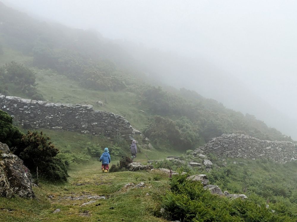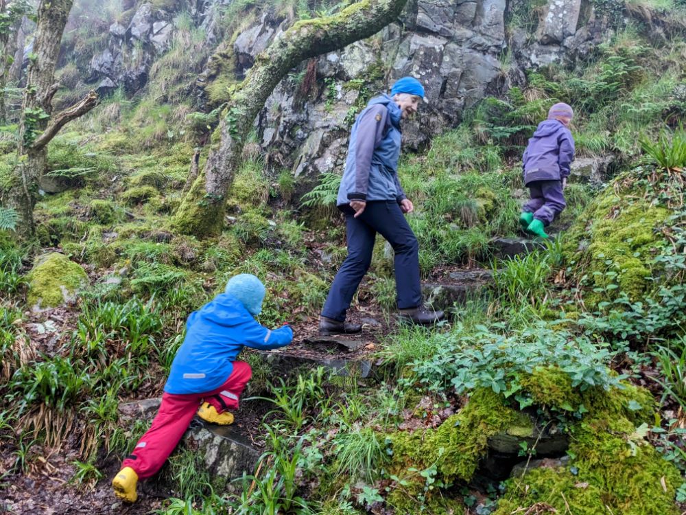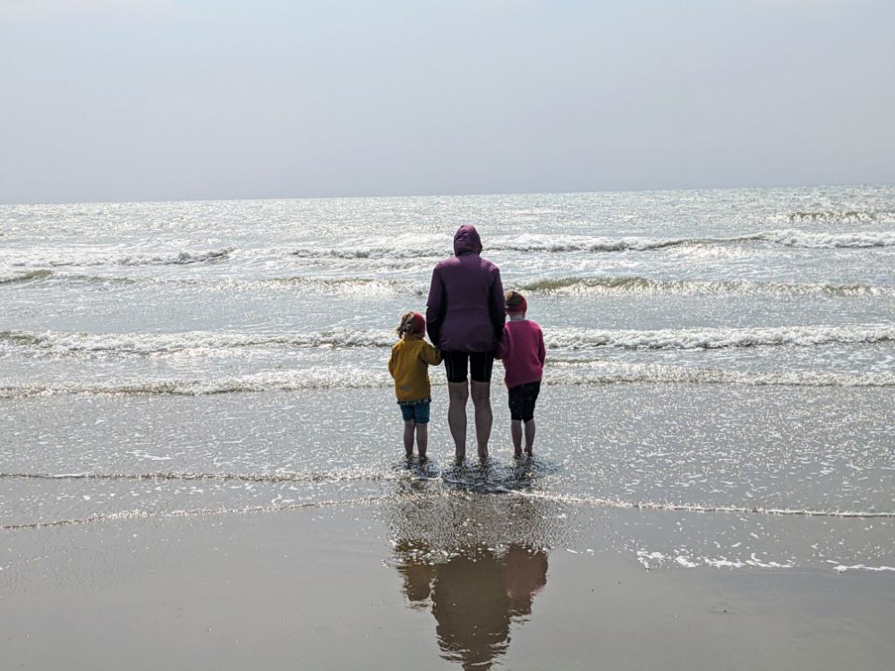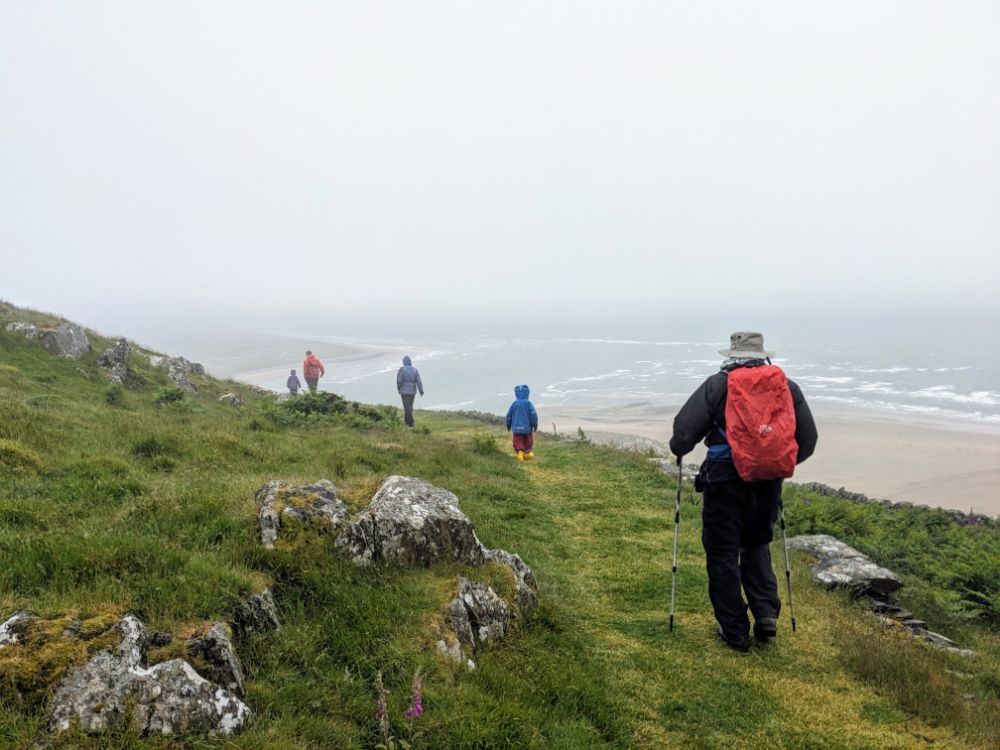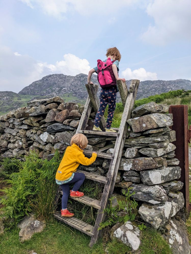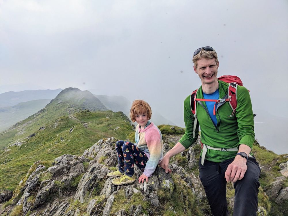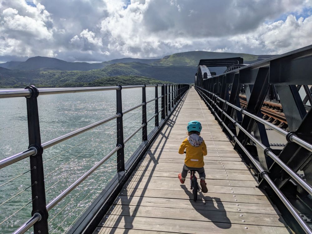 Saturday. Our cottage was fairly spectacularly situated high above Barmouth up a very steep road.View from the back garden towards the Llyn Peninsula. I don’t think I’ve ever seen so many foxgloves as this weekSunday. First on the to-do list: the beach!Running away from the waves was a fun (but inevitably wet) gameDrier funThe Welsh flag hill. A little afternoon outing for Dave and Jo View up the estuary After being tempted to go further than originally planned, we went to recce Barmouth Slabs as a potential scrambling playground for later in the week. The rather imposing bottom tier (the upper one was more suitable) The weather was generally better in the evenings, but a proper sunset from the garden remained elusive until the end of the weekMonday. Cycling across the bridge was another must-do activityBumpier than expected thanks to the planks!Freshly painted Boats in the harbour (a good chance to examine anchors in situ) Dunes and bayLots of walls to walk on! Donkey ridesHeading home (shortly after this was the most ridiculous hill I’ve ever attempted to cycle up) Tuesday. After a morning of heavy rain, we ventured out into the mist for a walk in the local hillside woodsWet, grassy paths flanked by wet bracken and gorse were a surprising hit. The jelly tots might have had something to do with it Exploring an old buildingFinally we can see the seaHeading down to townBarmouth hiding behind the pink flowers that are everywhere, that the girls love and that we don’t know the name ofAn astonishing amount of fun was had at a tiny crag and wall near the harbour, before we retreated to Davy Jones Locker for hot chocolateThe walk home along the shoreWednesday. Another damp day, which Jo and Dave decided to use to run the length of the Rhinogs back to Barmouth (24km and almost 1500m ascent). It was very wet and very misty. It was hard work and a lot of fun.A lot of the first half was not very runnable! A view at lastThursday. A slightly different view up the estuaryOn the Panorama WalkScramblingClimbing! Descending practiceGood view from the cragNow expert at being loweredFriday. We cycled to Dolgellau“I’m hungry” stop a few km in during which Claire ate all of her snacks for the dayAfter Dolgellau we headed up under Cadair IdrisThe high roads were quiet and delightful A (very) steep descent to Arthog followedAfter ice cream we inevitably ended up back on the beachPaddling Saturday: Cnicht on the way home. It looks a long way! MoelwynsScramble maximisingDespite the sunny forecast, we were almost in cloud at the top