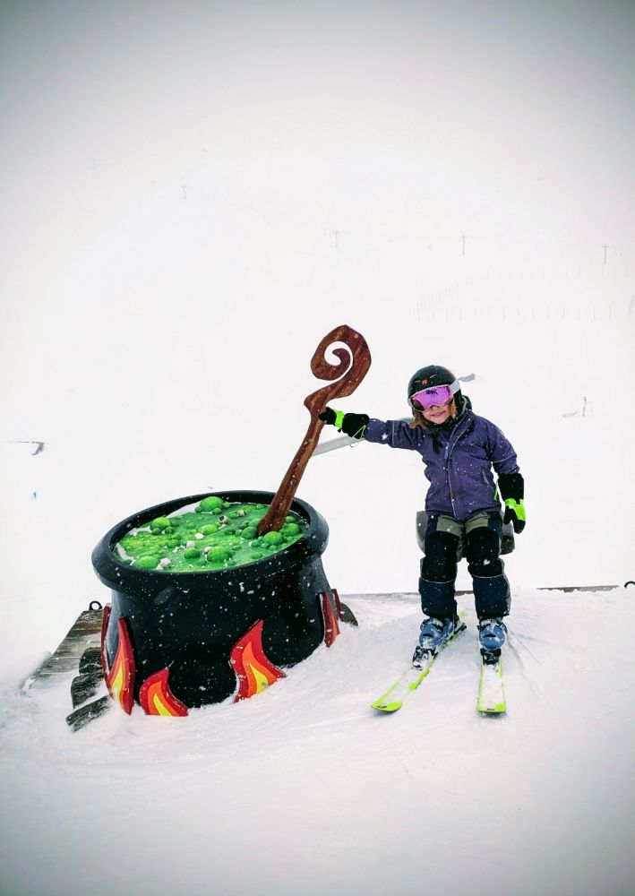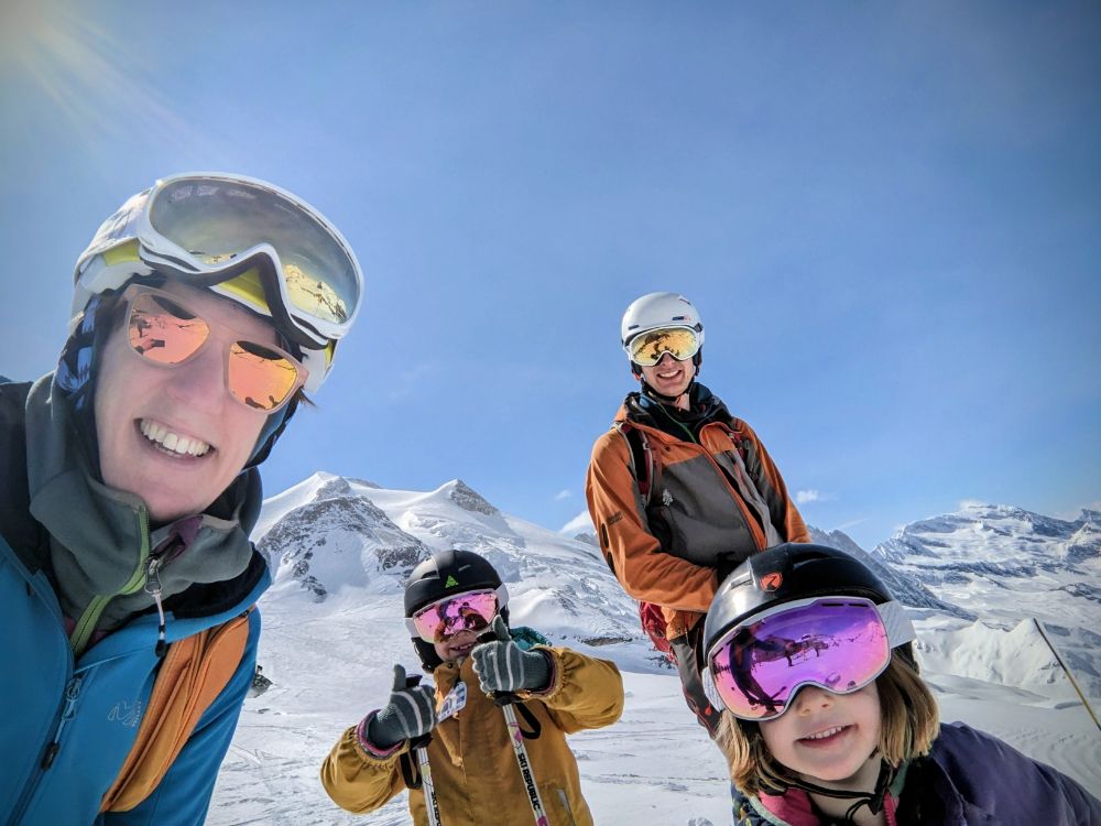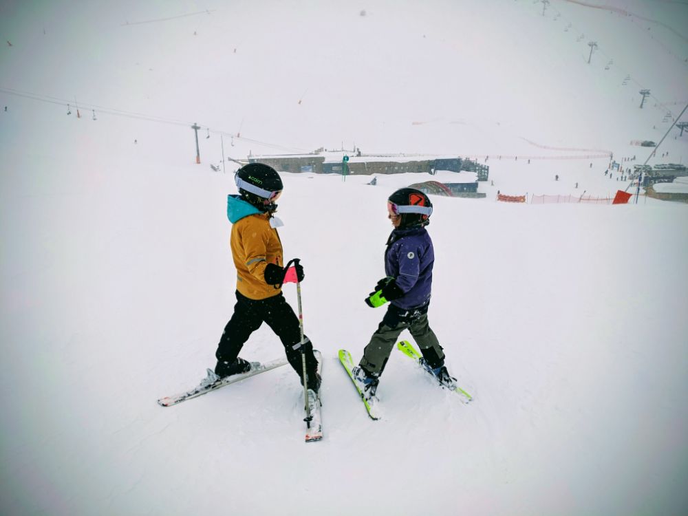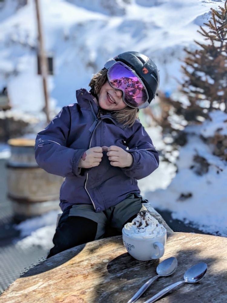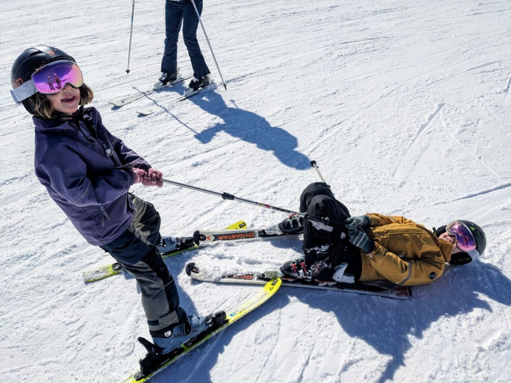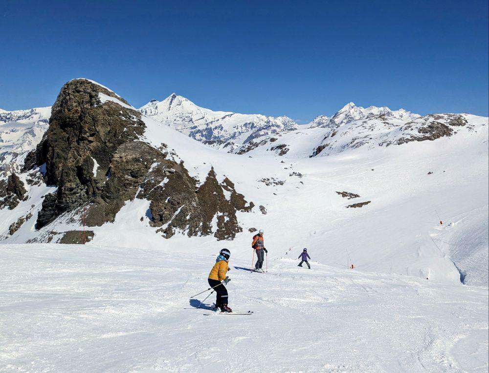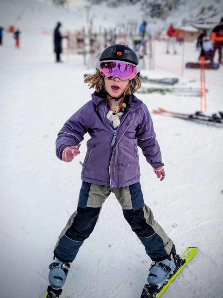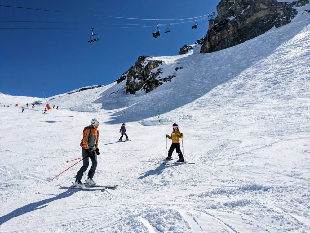 In the afternoon we started to ski as a family, initially on the fun run and later progressing to a mogully red, and enforced participation in the very strict C ski school!