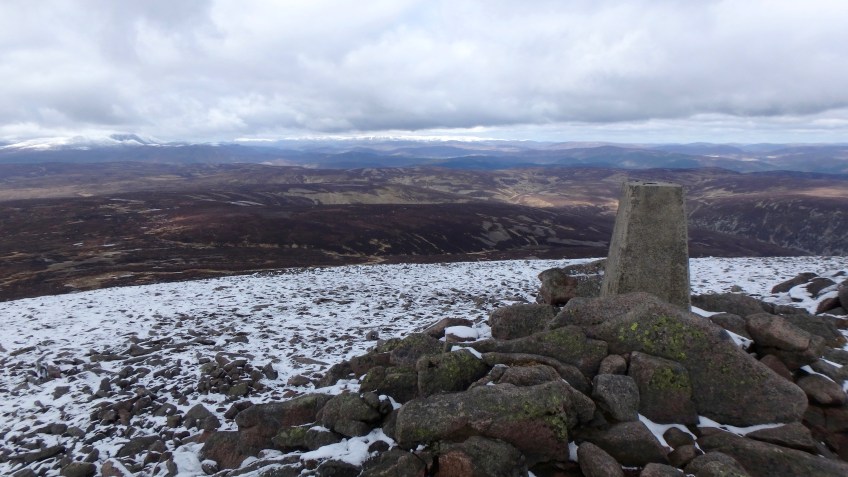 OLYMPUS DIGITAL CAMERA Published April 22, 2017 at 4608 × 2592 in OLYMPUS DIGITAL CAMERA Mount Keen summit, with snowy Lochnagar (left) and Ben Avon area (right) on the skyline