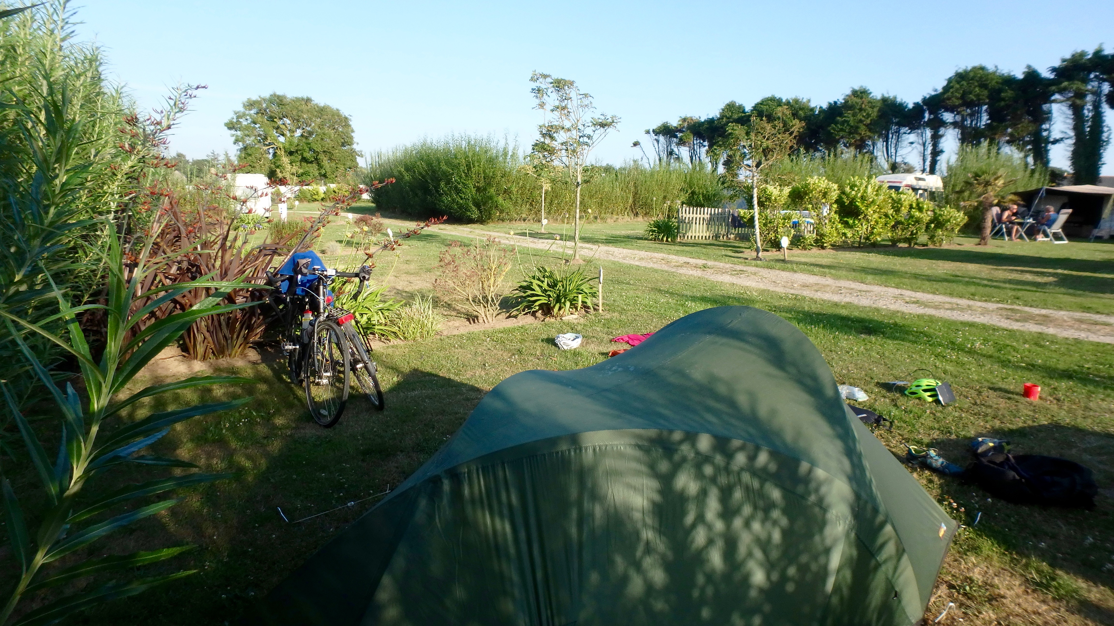 OLYMPUS DIGITAL CAMERA Published July 29, 2017 at 4608 × 2592 in OLYMPUS DIGITAL CAMERA Our campsite on Jersey – a haven of peace and shade (after a somewhat frenetic cycle over from St Helier on the main road) near St Ouen, where we were glad to stay for two nights and not have to cart camping gear all over Jersey!