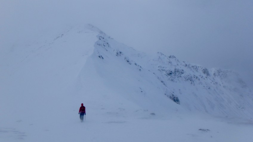 OLYMPUS DIGITAL CAMERA Published March 21, 2018 at 4608 × 2592 in OLYMPUS DIGITAL CAMERA Again, the cloud came in, and after some compass work we descended to the col, in high winds. We decided to give Sgorr Dhonuill a shot