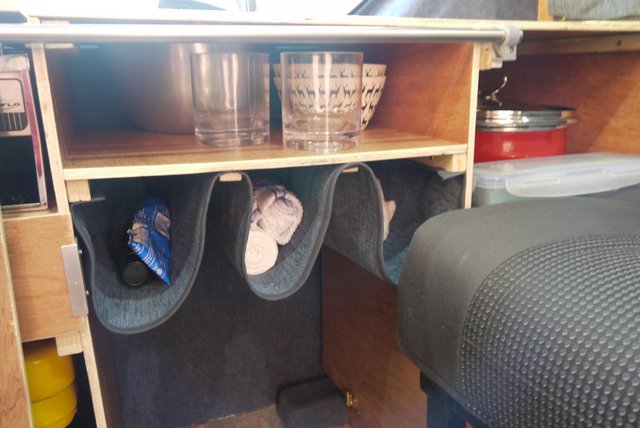 P1050035 Published July 13, 2014 at 640 × 428 in P1050035 The wine rack. No photos of installation as it was the single hardest thing we’ve done. Mainly because it’s in a small awkward place, and involves doing things with your shoulders jammed in, feet outside the van and heavy drills above your head.